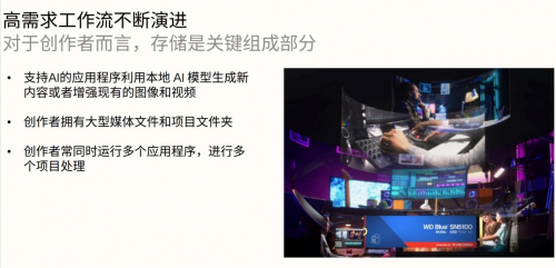 近期在闪迪召开的媒体分享会上,闪迪为参会媒体介绍了其*新产品WDBlueSN5100NVMeSSD的主要技术特性。这是一款专门为内容创作者和各种生产力套件的专业人士打造的一款产品,因为当前的内容创作和专业AI应用工作流对存储设备提出了更高的要求。随着AI的融入,闪迪预计这些工作流对存储性能和容量的需求将呈指数级增长。所以闪迪为这一需求打造了较为经济的PC存储解决方案——WDBlueSN5100NVMeSSD。