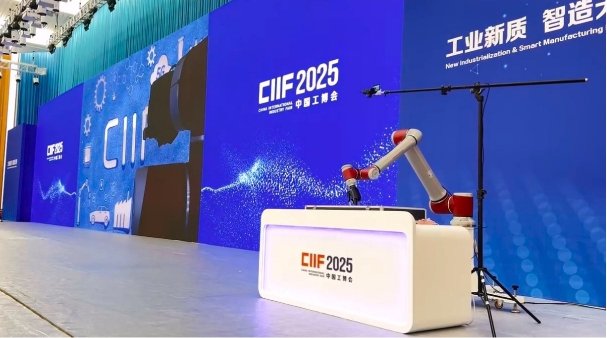 开幕式上,一场精彩绝伦的沙画表演惊艳上演。在两台由节卡机器人自主研发的智能机械臂精准操控下,细腻的沙粒逐渐勾勒出“CIIF”的清晰图示。科技的精密与艺术的灵动完美交融,这场表演不仅为工博会拉开了精彩序幕,更直观展现了“上海智造”的可靠与效率。