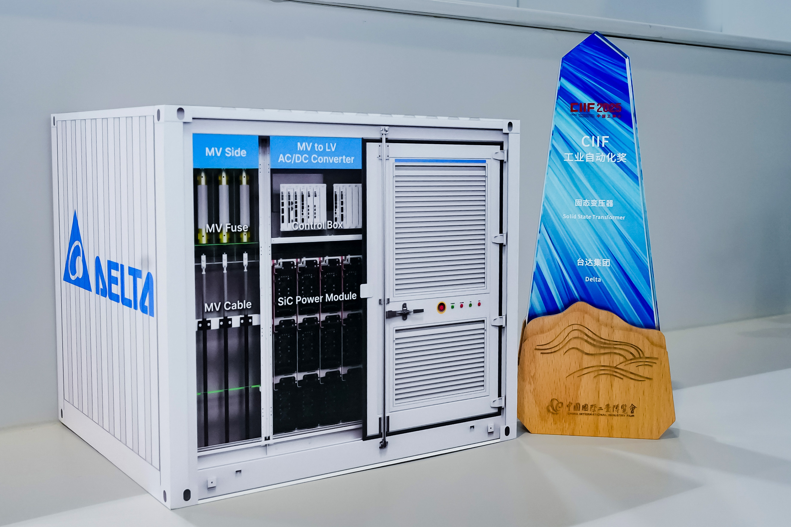 首次亮相的台达固态变压器,凭借新一代电力电子核心技术脱颖而出,荣获“CIIF工业自动化奖”,成为展区焦点。该展品支持“光储充”灵活集成,能有效平抑电网波动,在能效提升至98%+的同时,设备体积缩小70%以上。在电动汽车爆发式增长的当下,它能满足用户对“充电像加油一样快”的迫切需求。